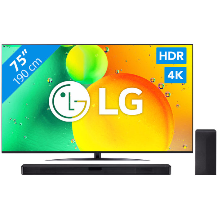 Met de LG 75NANO766QA (2022) + Soundbar haal je een complete thuisbioscoop-ervaring in huis. Geniet van je favoriete content met indrukwekkend beeld en geluid, en laat je meeslepen in een wereld van entertainment. Laat je onderdompelen in films, series en games zoals nooit tevoren, gewoon vanuit je eigen woonkamer. Vind de laagste prijs